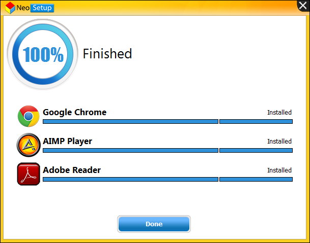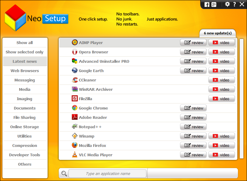 Handy installer/updater, NeoSetup displays an array of Windows applications it can install and all you have to do is check the ones you want on your PC. At the click of a button, NeoSetup downloads the latest version of each application and installs it without displaying any installation wizard.